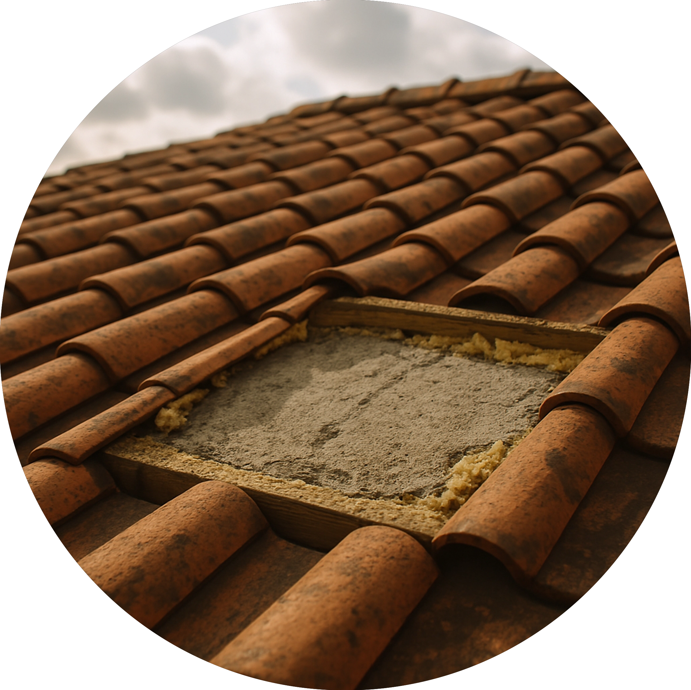 Desmontaje cuidadoso de las tejas o pizarras para acceder al interior del tejado.
