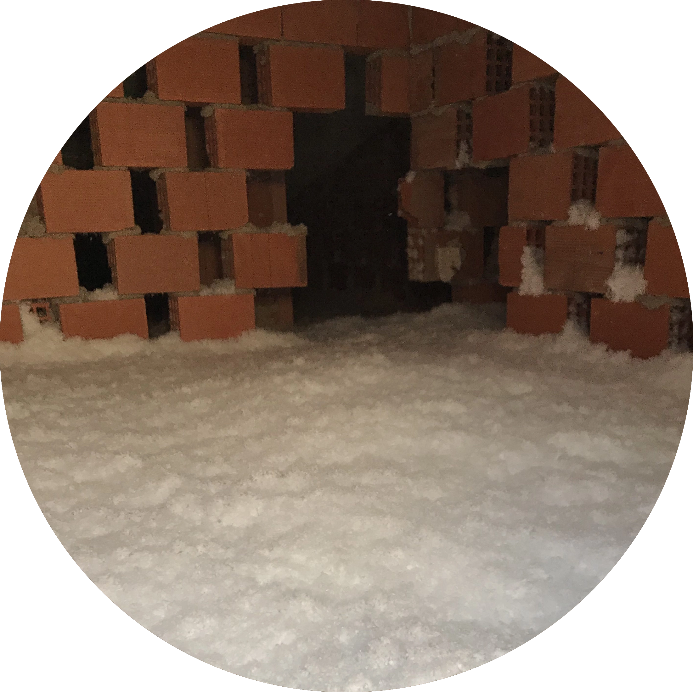 Instalación del aislante mediante técnica de soplado hasta alcanzar el espesor óptimo.